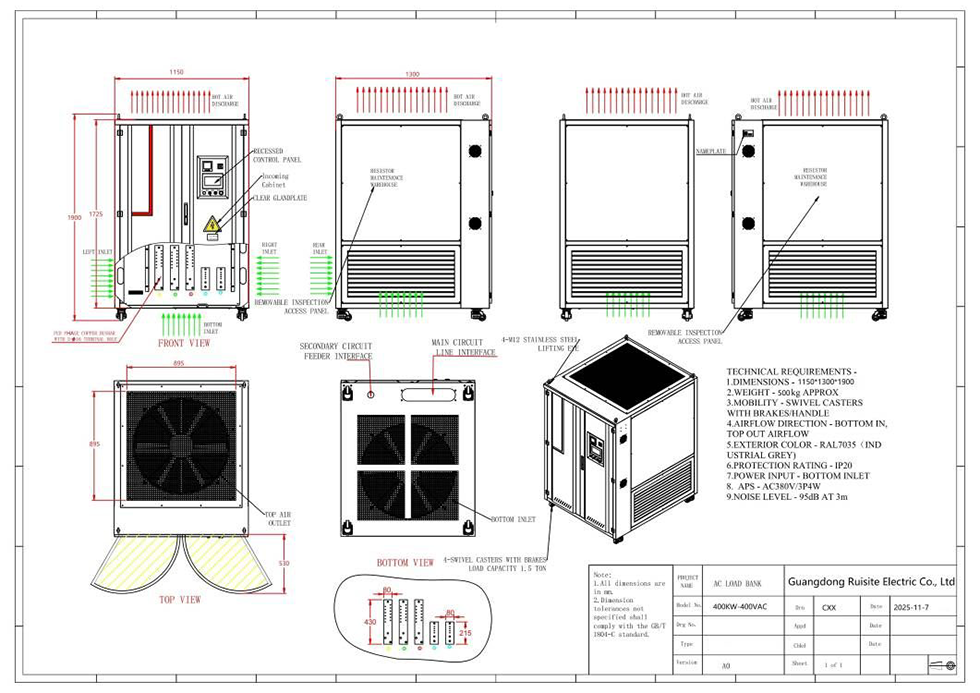 ● 2008年起专业生产大功率400kW 400V负载箱。